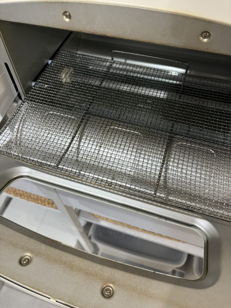「掃除がしにくい」という口コミは、おそらく旧モデルのものでしょう。断言しますが、現行モデルの掃除は非常に簡単です。パンくずは、必ず本体下部にあるパンくずトレイか、その周辺の掃除しやすいスペースに落ちるように設計されています。使用後にトレイをサッと引き出して捨てるだけなので、数秒で完了します。網も簡単に取り外せるので、気になる時にサッと拭くだけ。2年間使っていても、掃除が大変だと感じたことは一度もありません。